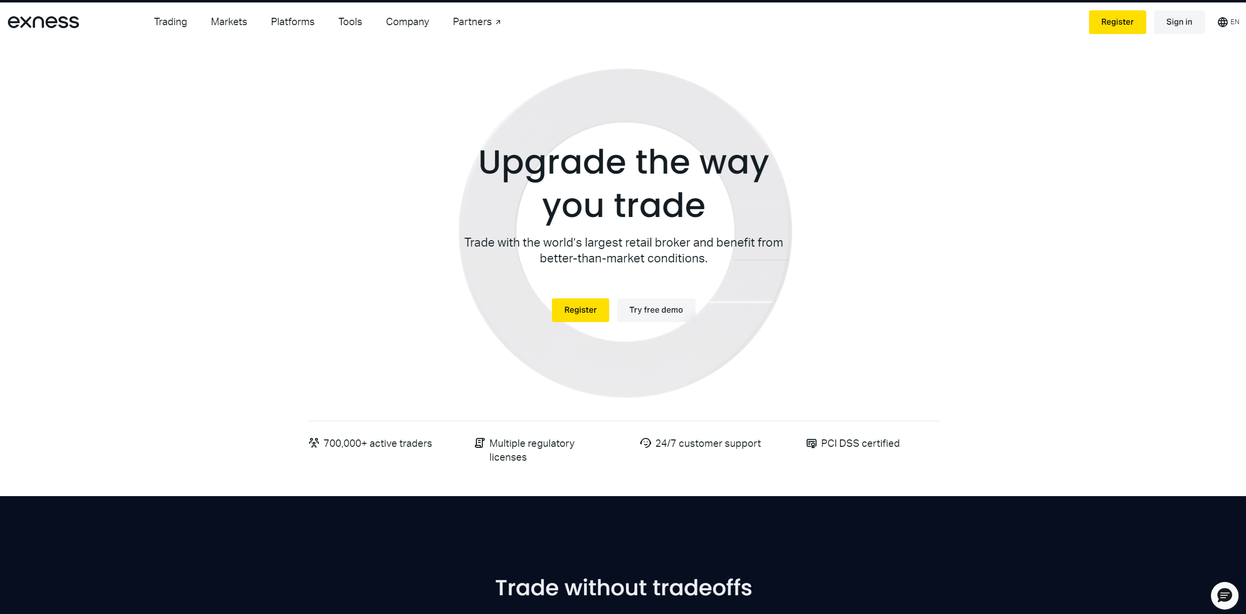 1. Untuk memulai, kunjungi exness.com. 2. Di halaman beranda yang terbuka, Anda dapat mendaftar dengan 2 cara mudah: