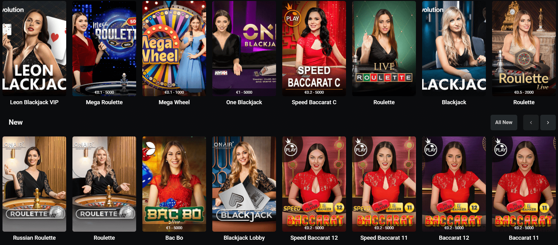 Υπάρχουν 3000 παιχνίδια στην επιλογή φαγητού αυτού του ιστότοπου καζίνο, συμπεριλαμβανομένων παιχνιδιών από 55 κορυφαίους παρόχους, όπως NetEnt, Practical Play, Microgaming και Thunderkick. Επιπλέον, μπορείτε να δοκιμάσετε κάθε παιχνίδι κουλοχέρη στην δοκιμαστική έκδοση. Το online σύστημα του online καζίνο Leon προσφέρει επίσης προοδευτικές θύρες βραβείων.